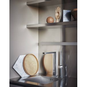 Grâce à ses volumes légers, son esthétique délicate et bien définie, sa structure sans angles droits, et ses détails intemporels, Unit s’intègre aisément à votre espace.