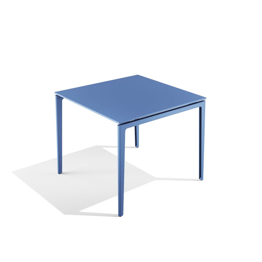 Table carrèe 80x80cm avec structure en acier et plateau en acier, HPL ou PaperStone®. Elle s’avère stable et robuste, en dépit de son apparente légèreté qui lui confère une grande élégance.