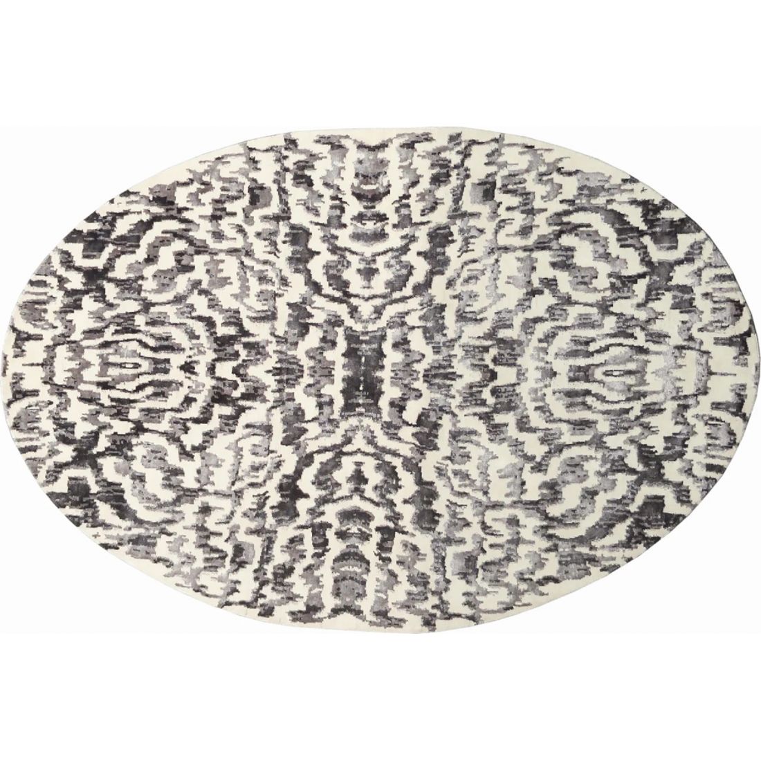 Un tapis tout ovale en laine et soie végétale, taches de douceur mystérieuses et envoûtantes empreintes d’une nature sauvage...