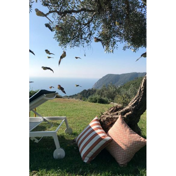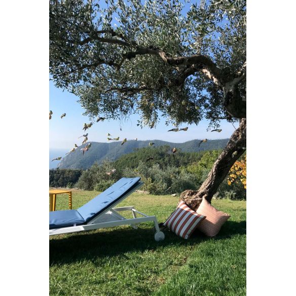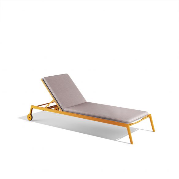 Le transat avec roues Gao est caractérisé par une recherche rigoureuse des proportions, ce qui le rend parfaitement équilibré et jouit d’une élégance indémodable. Il est très léger, tant visuellement que physiquement, puisqu’il est fabriqué en alliage d’aluminium.