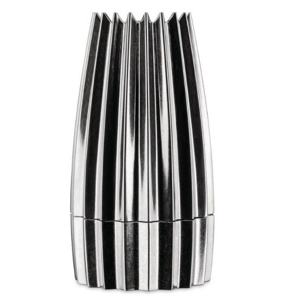 Une célébration de la table et des instruments qui exaltent le plaisir de déguster de la bonne nourriture : c’est ainsi que William Alsop et Federico Grazzini ont conçu le Moulin à sel, poivre et épices « Grind ». Ce n’est pas un simple gadget, prévu pour une table où l’on prend un repas de façon distraite, mais un objet qui fait partie d’une expérience fondamentale. En outre, les auteurs ont introduit un petit changement à la structure courante de cet ustensile : lorsque le Moulin à poivre n’est pas utilisé, on le pose sur la table avec la partie qui loge la meule tournée vers le haut. Ainsi la meule reste visible et élégamment encadrée par le design particulier du corps du Moulin à sel. C’est un détail important du point de vue fonctionnel, car après l’emploi on peut poser « Grind » sur la table, en évitant de la salir avec des résidus d’épices broyées.