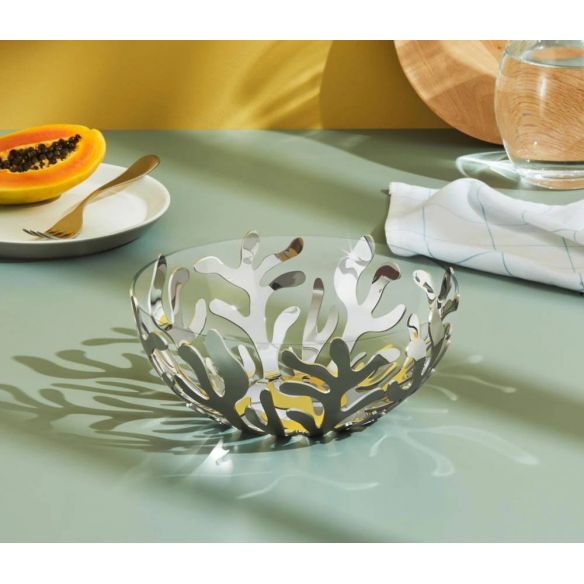 Le bol Alessi peut être assorti à la corbeille de fruits Mediterraneo pour donner vie à un nouvel objet, pouvant contenir de la salade ou d’autres mets comme des pâtes et de la salade de fruits.