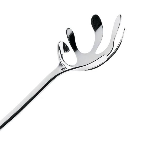 La louche à spaghetti Alessi fait partie de la famille des objets "Mediterraneo" pour la table. Le projet sur les aspects formels et fonctionnels d'une icône comme le corail a changé les branches et ils peuvent contenir des spaghetti.