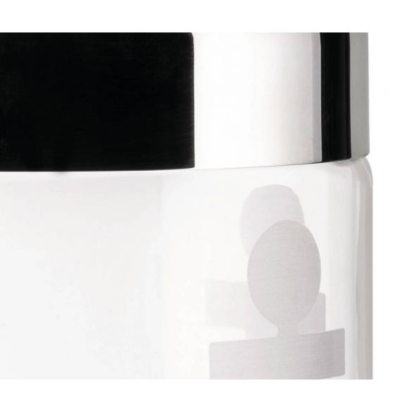 Boîte de cuisine hermétique en verre sérigraphié avec couvercle en acier brillant.