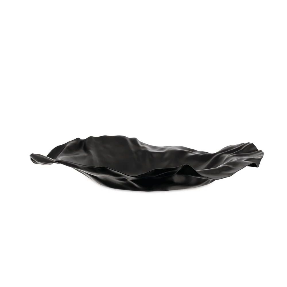 Fasciné par les plis capricieux d'un plateau en papier d'argent, le bord froissé est obtenu par la technique complexe de l'estampage à froid en une seule opération.