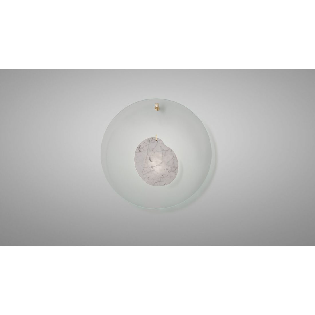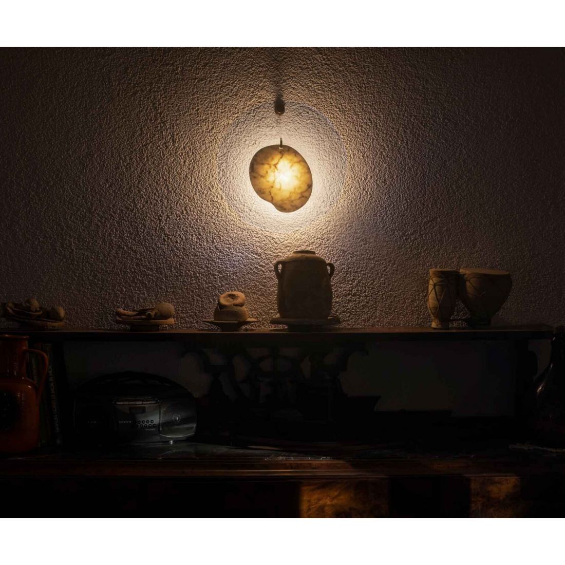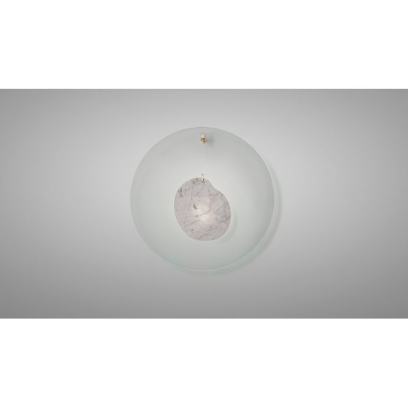 La lampe Gioia est un bijou conçu pour orner un mur. La magie réside dans la composition : un élément en marbre statuaire placé au centre d’un disque transparent en polyméthacrylate de méthyle. Les deux éléments, libres de leurs mouvements, rappellent le rythme oscillant d’une boucle d’oreille.