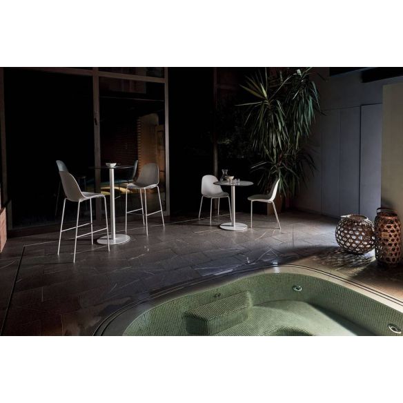 Chaise empilable, structure en métal laqué pour l’extérieur. Coque en polypropylène.