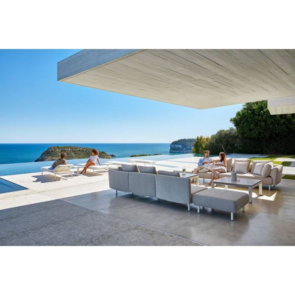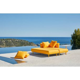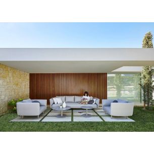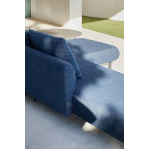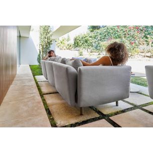 Collection de sofa modulaire de structure complète en acier inoxydable. Sa caractéristique principale est son système flexible de module avec trois dimensions possible, qui peuvent se configurer avec ou sans dossier, permettant un large éventail de combinaison. Son assise est déhoussable et protégé par une couche imperméable de polyester.