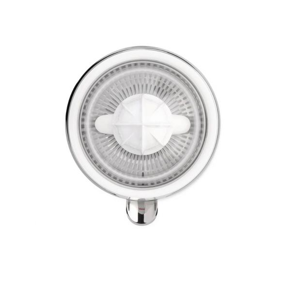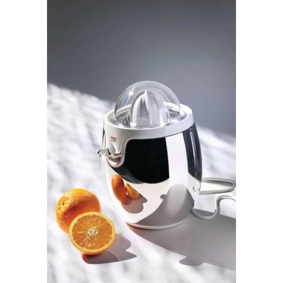 Dans les lignes douces de ce presse-agrumes, réalisé presque entièrement en acier inoxydable, transparaît clairement la recherche de Stefano Giovannoni pour une sorte de nouveau classicisme, pour l’harmonie, pour le paysage ménager de notre siècle.