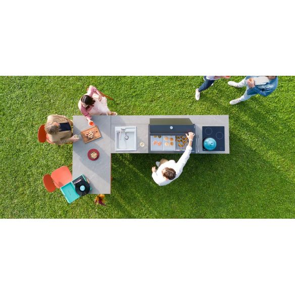 La cuisine d'extérieur Agher est un modèle polyvalent et parfaitement équipé, adapté à tous les espaces. Elle se décline en quatre couleurs uniques qui subliment tout environnement. Dotée d'un barbecue intégré Fogher et de deux espaces personnalisables avec un évier, des systèmes de cuisson ou une planche à découper, elle allie élégance et fonctionnalité...