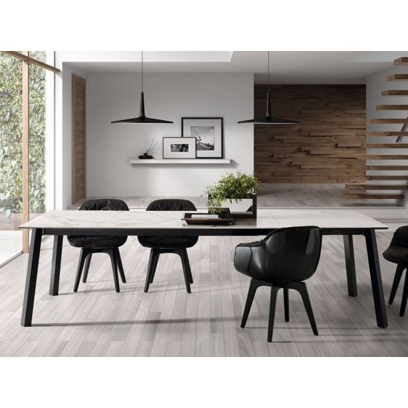 La forme élégante et le glissement de ses pieds en 6x6cm nous conduit pour tous ceux qui l’observent vers un léger étonnement pour une table de son gabarit. Elle se montre délicate et fine, mais sans dispenser dans l’absolue sa stabilité et la qualité des détails. La sensation de pesanteur du plateau provoque chez ses admirateurs un effet fascinant. Une merveilleuse sensation qui vous pousse à l’imaginer dans tous les recoins de votre maison, entouré de vos biens les plus précieux et de vos proches les plus chers