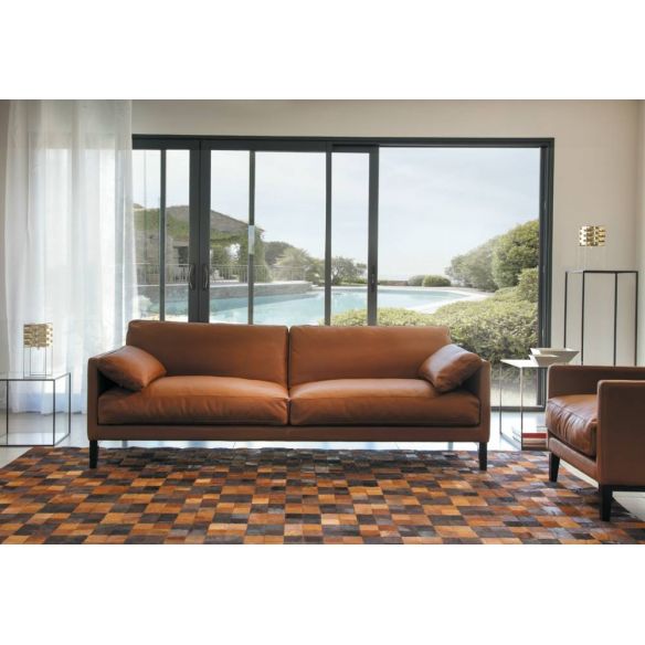 La finesse des accoudoirs permet de maximiser la dimension d'assise par rapport à l'encombrement et en fait aussi un canapé pour des espaces plus petits.
