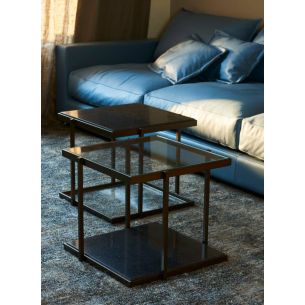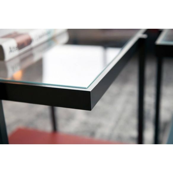- Dalle en verre trempé de 6 mm (pour la version bout de canapé) ou 8 mm (pour les autres versions), extra-blanc ou gris fumé