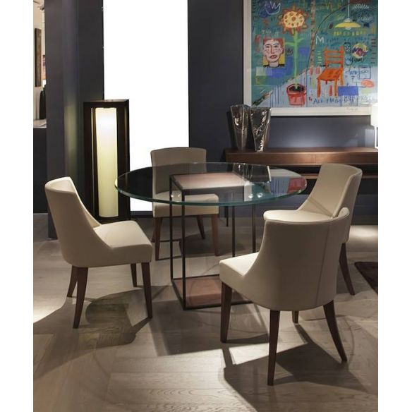 La délicate courbe du dossier, reprise dans le piétement de la chaise Lisa, marque le style d’un modèle sobrement classique. L’arrondi du dossier, qui évoque la forme d’un bridge, apporte quant à lui un confort enveloppant.