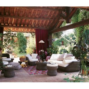 Conçu pour un environnement, le Eden La ligne personnifie ces formes sinueuses et enveloppantes en aluminium recouvertes de fibre synthétique WaProLace® marron tropical tissée à la main. La WaProLace, une fibre synthétique déposée par Unopiù particulièrement utilisée pour les canapés, tables et fauteuils d'extérieur. Soumise à des tests de laboratoire rigoureux, le matériau de toiture s'avère être extrêmement résistant aux agents atmosphériques.Exposée pendant de longues périodes aux intempéries, en particulier à l'action agressive du soleil, de la pluie et de l'humidité, la WaProLace n'a subi aucun type d'altération. Résistant à l'eau salée, à l'eau chlorée et à la plupart Substances courantes des crèmes et des produits solaires, elle garantit une excellente durabilité tant en termes d'esthétique que de qualité.