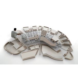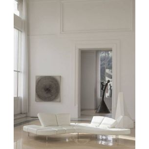 Type de canapé inédit et unique contenu dans seulement quatorze centimètres d'épaisseur qui renouvelle le concept traditionnel d'assise et multiplie les performances. La forme sinueuse du plateau rembourré offre neuf parties inclinables, chacune selon six angles différents. En fait, chacun peut être utilisé à volonté comme dossier, accoudoir, appui-tête, siège, repose-jambes ou repose-pieds. L'inclinaison séparée et différenciée de chaque pièce améliore leur synergie. Une polyvalence extraordinaire qui offre de nouvelles expressions au concept de relaxation. Un dynamisme anatomique qui évolue pour satisfaire les envies.