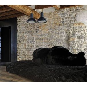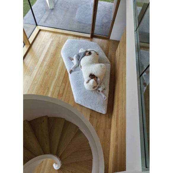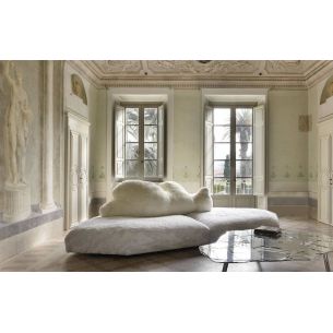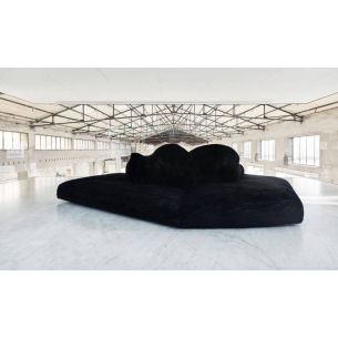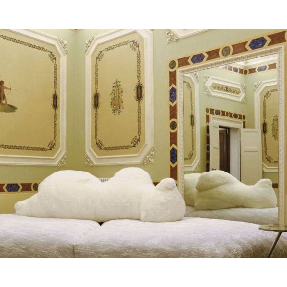 Une banquise comme base. Un ours couché sur le côté comme dossier. La base est rembourrée avec du Gellyfoam et du duvet, recouvert d'un tissu exclusif avec une texture qui rappelle les couches de glace. Le dos est doux, en fibre de polyester et recouvert de fourrure écologique. S'appuyant dessus, le gros ours soutient, embrasse et accueille, offre une détente définitivement libérée de toutes contraintes. Un dos doux, recouvert de fourrure écologique.