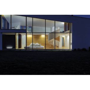 La forme de la base est irrégulière et composée de deux parties, correspondant à un angle droit de trois mètres et soixante-dix centimètres sur deux et cinquante. Disponible en version blanche et noire.
