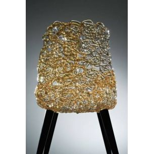 Jeux de lumière et de transparence pour cette chaise dont l'assise et le dossier sont constitués d'un seul fil qui forme une précieuse broderie en polycarbonate, le tout réalisé à la main.