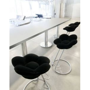 Faisant partie de la collection Edra Flower, ce tabouret en forme de fleur avec une tige inclinée pour former le support porteur. Le siège accueillant est rembourré de mousse polyuréthane et recouvert de velours.