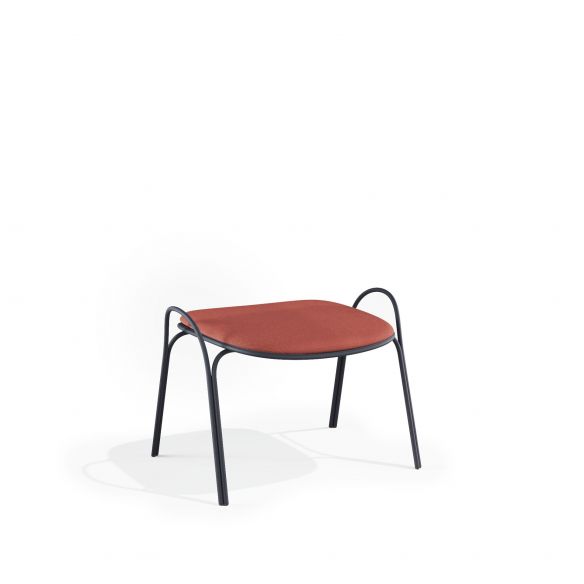 Pouf en acier pour l’extérieur, avec coussin inclus. Utilisé comme assise ou en complément du fauteuil, apportant ainsi plus de confort aux moments de repos.
