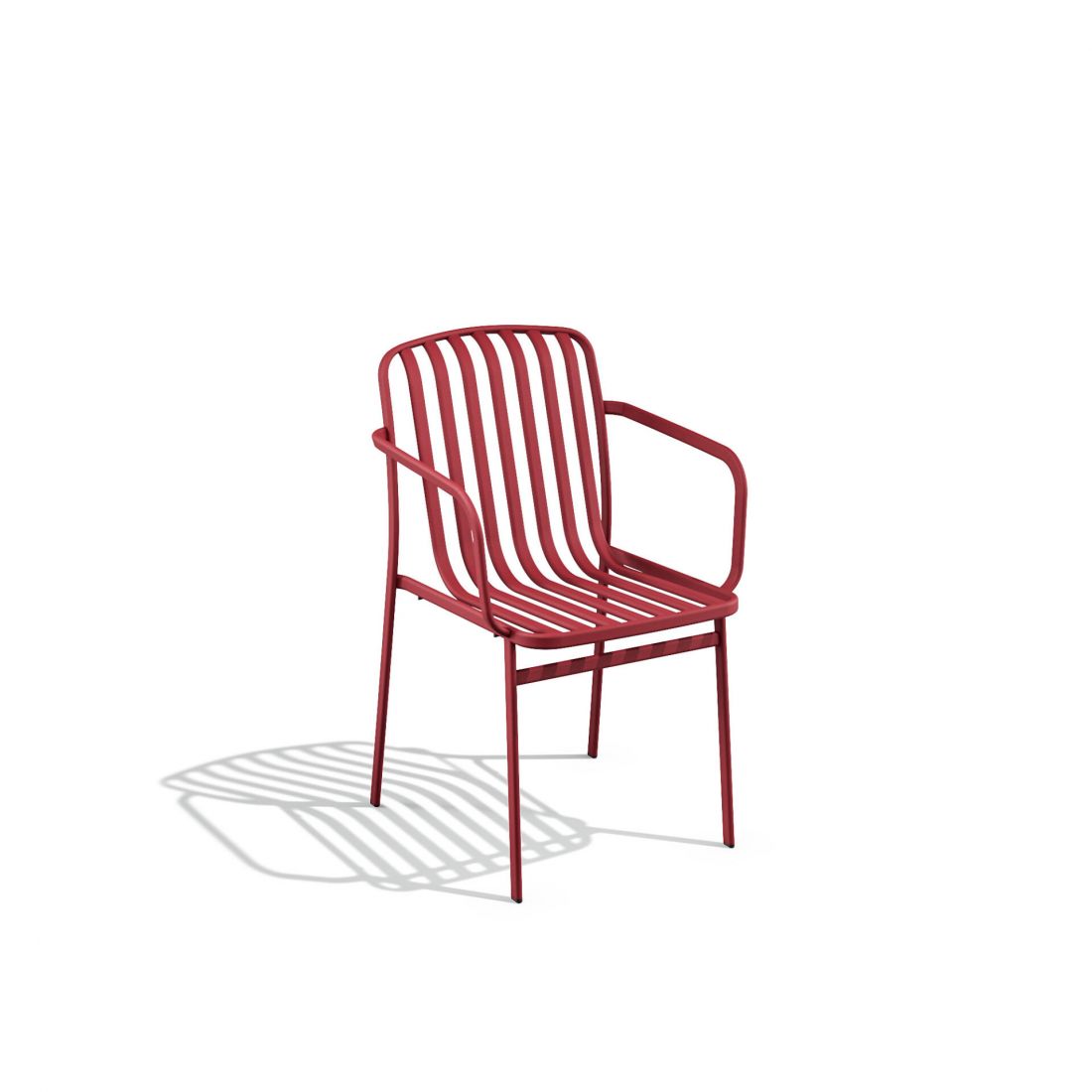 Chaise avec accoudoirs empilable en acier à l’esthétique discrète mais affirmée, parfaitement adaptée aux différentes occasions du quotidien.