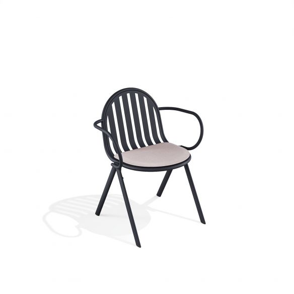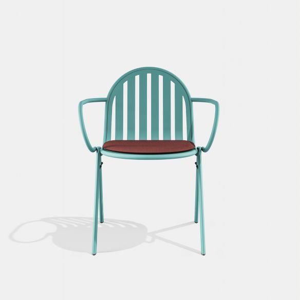 Cette famille se compose de chaises, d’un fauteuil, d’une banquette à deux places (tous empilables) et de tables de différentes tailles dont les éléments en acier sont soumis à traitement anti-corrosion avec une couche de primer (ou galvanisation à la demande) et peints à la poudre polyester très résistante aux conditions atmosphériques.
