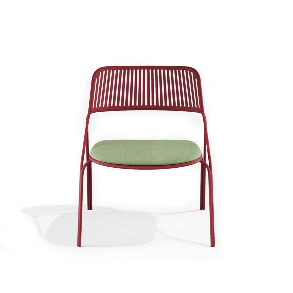 Petit fauteuil en acier à la saveur légèrement vintage, remis au goût du jour par le créateur pour vivre des moments de détente et de convivialité en plein air, grâce notamment au confortable coussin inclus.
