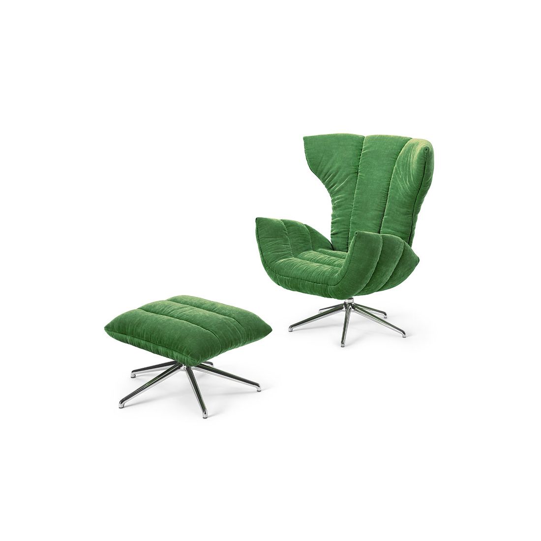 Chaise longue inspirée par une fleur assise et dossier incurvés en bois moulé ressorts Bonell intégrées pour un meilleur confort d’assise doté d’un mécanisme souple pour pivoter et se balancer