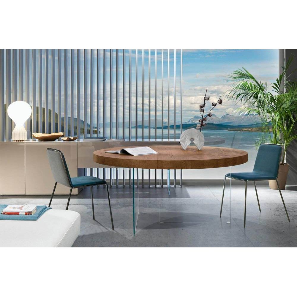 Minimaliste et surprenante, suspendue sur un piétement en verre presque invisible, la table AIR semble flotter dans l’air.