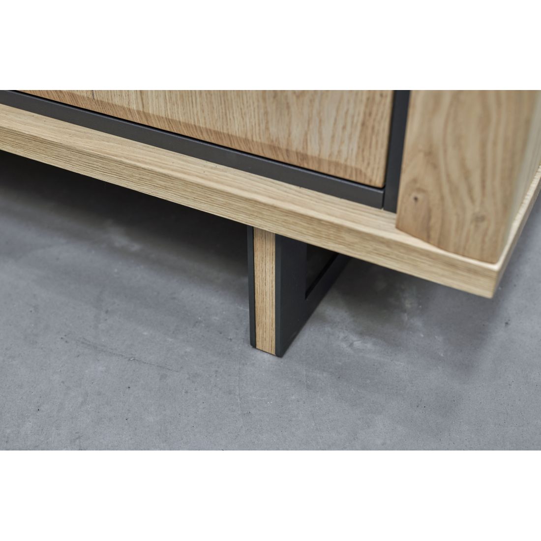 Pieds : Métal gris anthracite avec incrustation chêne massif.