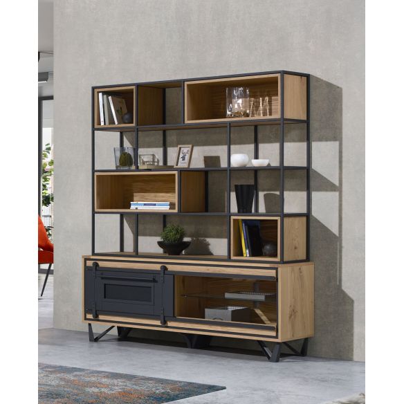 Côtés et Derrière : Panneaux de particules revêtus de placage chêne.