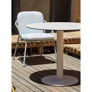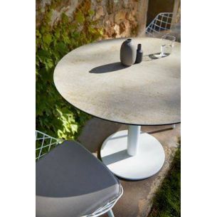 Tables et tables basses avec pied central et plateau céramique laminé sur un support verre disponibles en six hauteurs différentes (H33 / H40 / H55 / H75 / H90 / H110). Touts les éléments extérieurs métalliques de sa structure ont été fabriqués en acier inoxydable. Base (Ø45 ,Ø50 et Ø65) recouverte d’une tôle de finition.