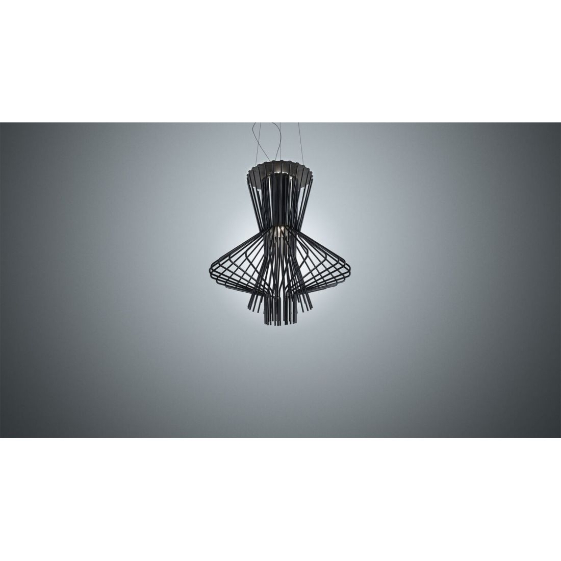 Les lampes suspendues Allegretto sont fondées sur une harmonie de lignes fines, créant des formes tridimensionnelles et des jeux d’ombre et de lumière. Technologique et granuleuse, la version Allegretto Ritmico présente une couleur graphite qui souligne son design contemporain.