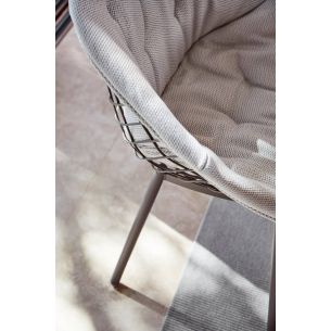 Canasta avec house est une chaise fabriqué entièrement en acier inoxydable. Une housse amovible et déhoussable, composé à l’intérieur de fibre polyester et de mousse polyuréthane hydrofuge (Dry Feel), qui parcoure toute la périphérie de la chaise et montrant la minutieuse partie arrière caractérisant sa structure.