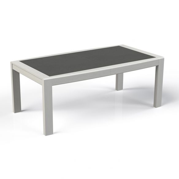 Plateaux et allonge : Panneaux de particules revêtus de céramique avec emboitures en chêne massif.